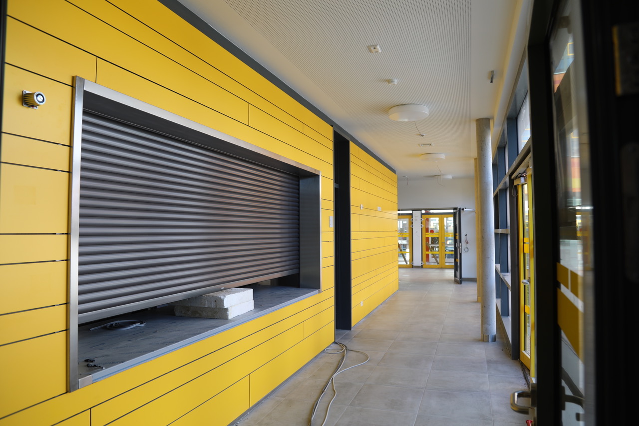 Ausgabe-Fenster im Verbindungstrakt zwischen Mensa und Schulgebäude