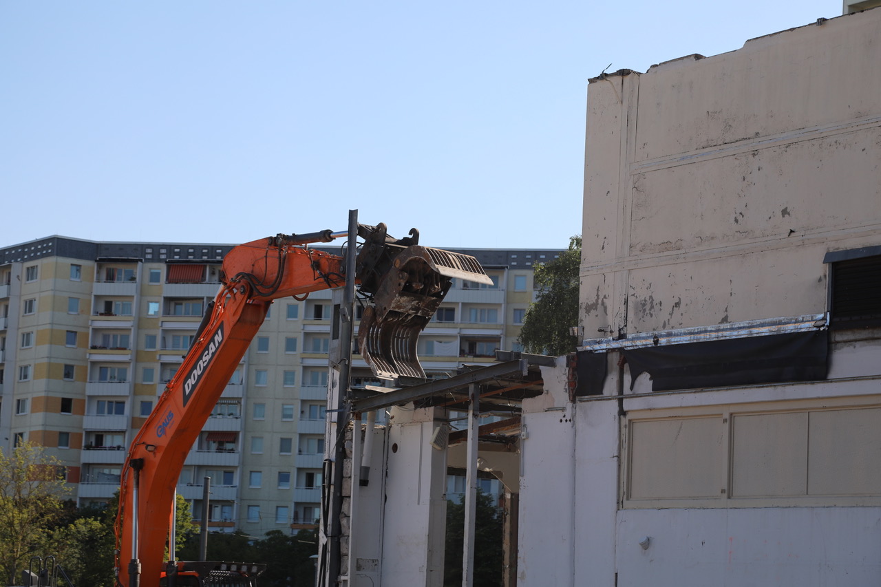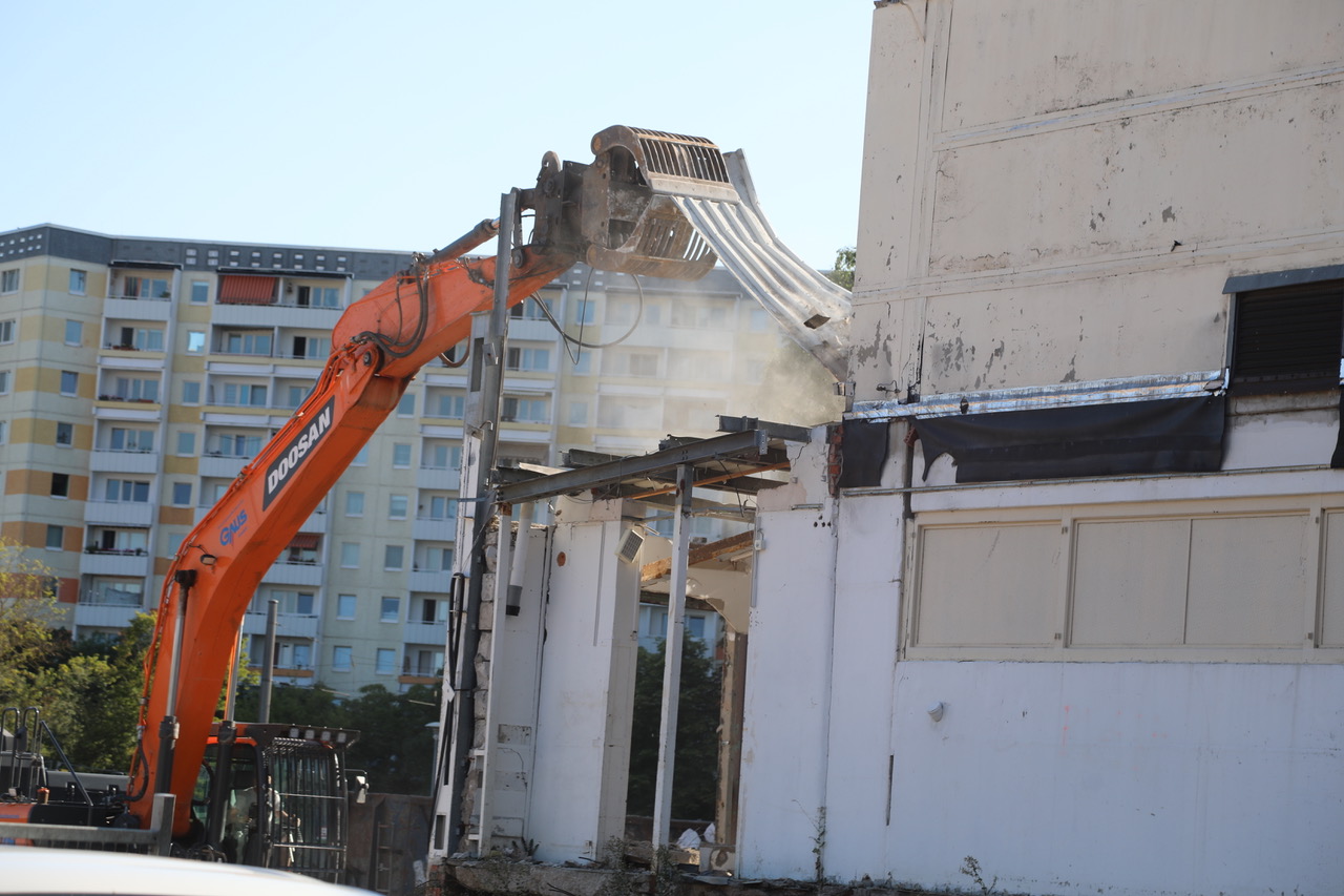 Parallel dazu wurde ein Teil des Gebäudes der SWE Umformerstation zurückgebaut. Wir haben die Arbeiten beobachten und im Bild festhalten können.