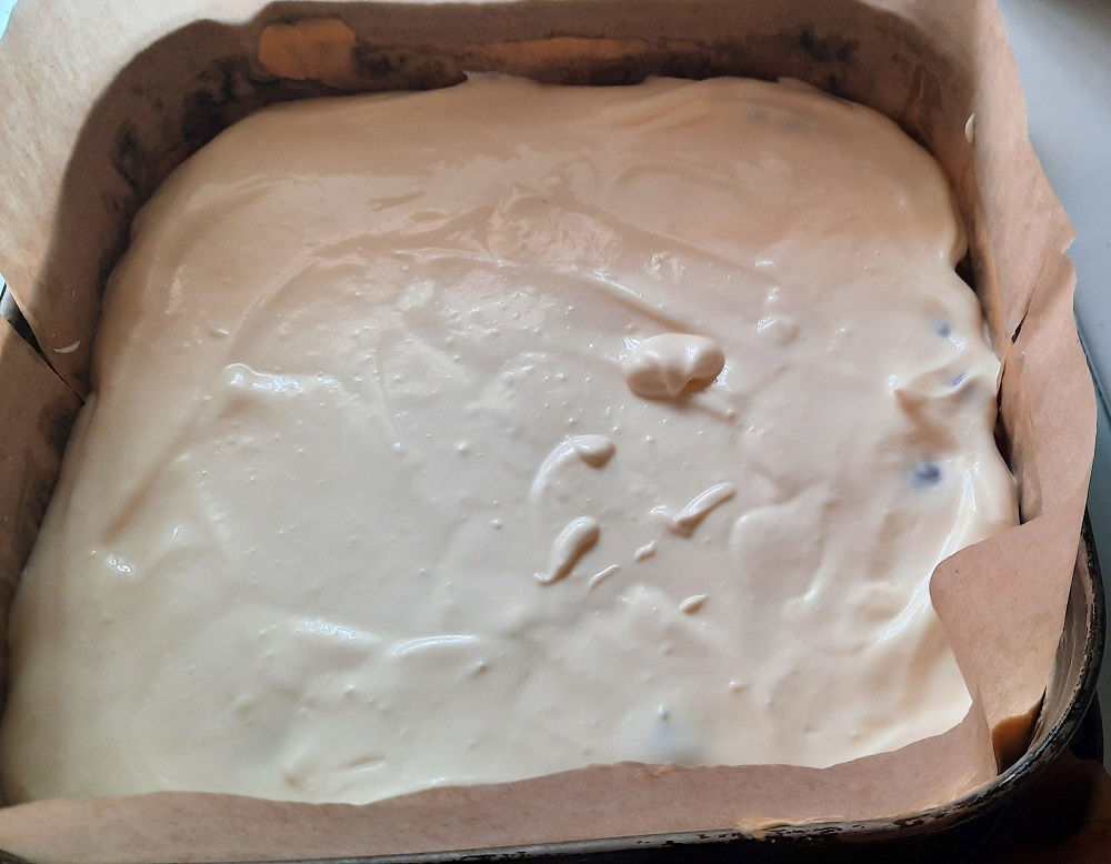 Masse: 500g Quark, 1 Becher Schmand, 100g weiche Butter, 150g Puderzucker, 2 Eier,