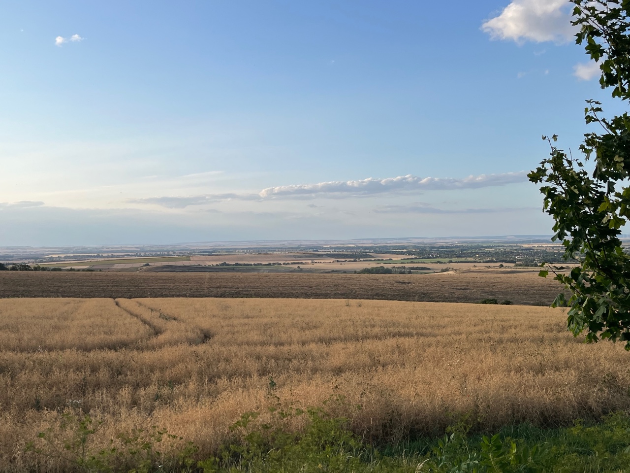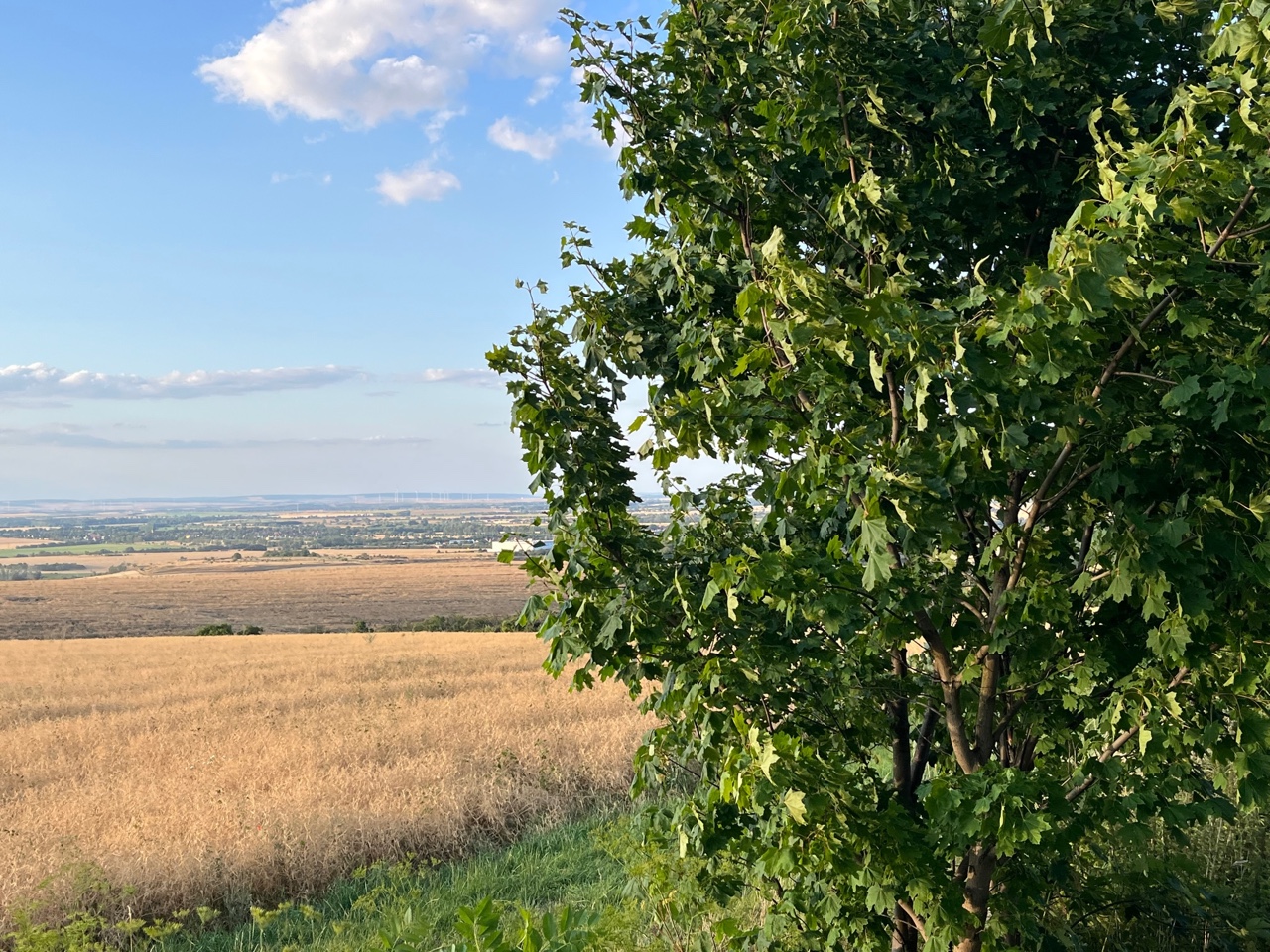 Fährt man von Friedrichsdorf über Tiefthal in Richtung Erfurt, liegt einem die Landschaft zu Füßen. Vorbei an der Schwellenburg bei Kühnhausen mit ihrer einzigartigen Steppenvegetation. In einiger Entfernung erheben sich die Hochhäuser unseres Stadtteils – weithin sichtbar. Wir haben diese Tour in den Abendstunden absolviert, weil das Korn, dort, wo es noch nicht abgeerntet ist, goldgelb das Grün der Bäume, Sträucher und Wiesen kontrastiert.