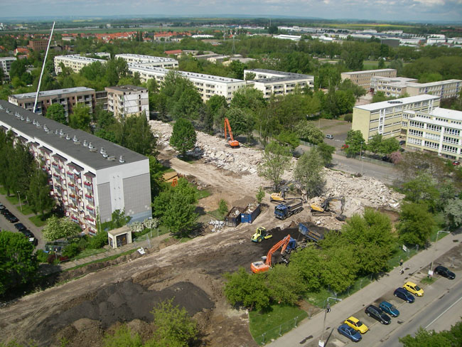 Die Wohnungsbaugenossenschaften und das kommunale Wohnungsunternehmen hatten gemäß eines Rahmenkonzeptes, Gebäude abzureißen oder zurückzubauen. Private Vermieter hätte man nicht dazu bringen können, ihren Besitz abzureißen. Inzwischen werden Wohnung wieder benötigt, vor allem solche mit bezahlbaren Mieten.