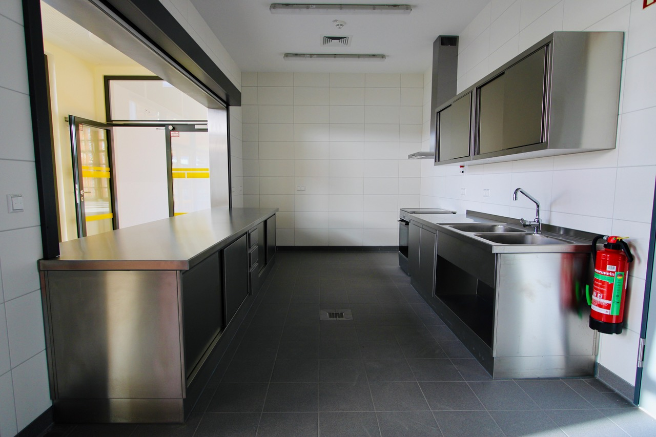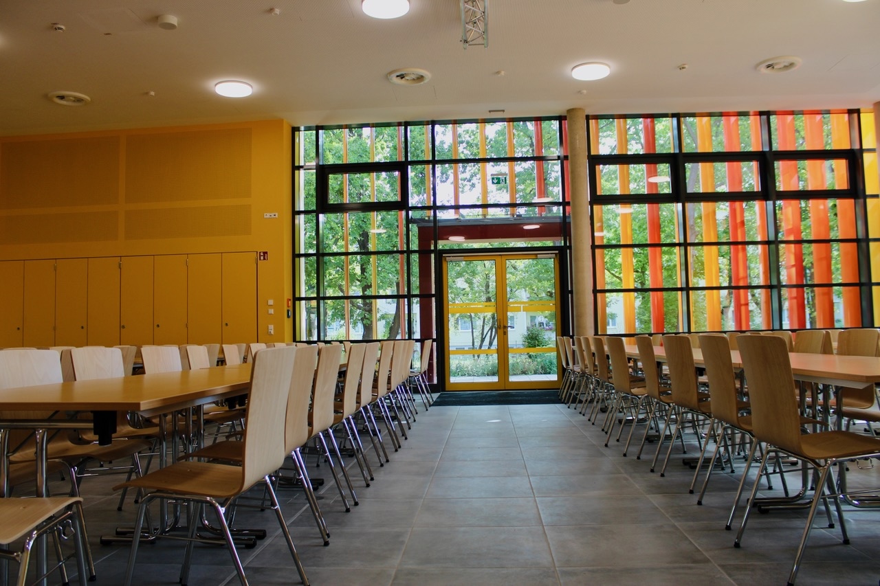 Die neue Mensa ist so konzipiert, dass sie nicht nur als Speisesaal, sondern auch als vielseitiger Veranstaltungsraum für schulische Aktivitäten dient. Mit einer modernen Ausgabeküche ausgestattet, kann sie künftig bis zu 300 Schülerinnen und Schüler mit Essen versorgen. Der direkte Durchgang zum Schulgebäude sorgt für einen schnellen und wettergeschützten Zugang.
