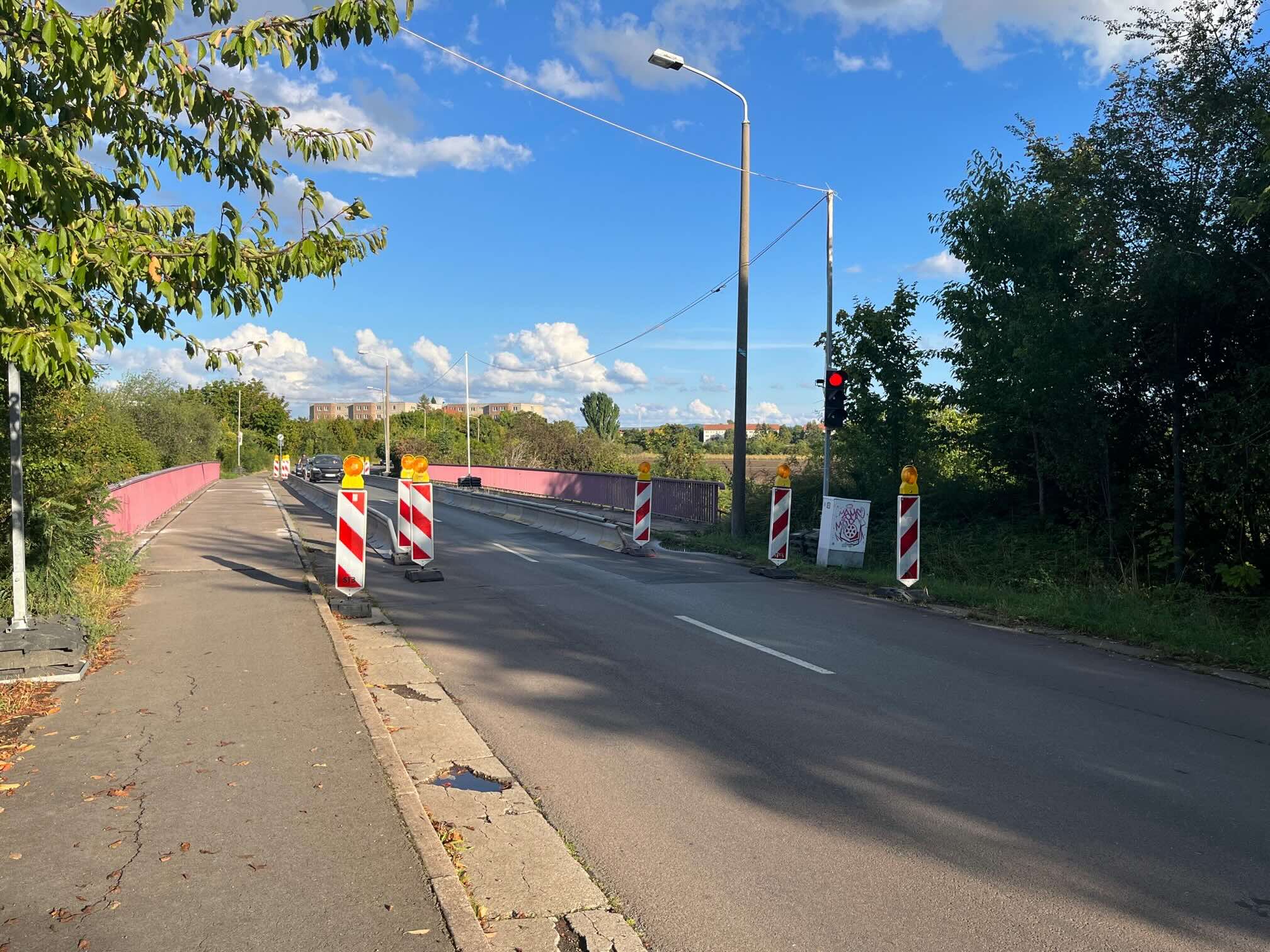 Ein aktuelles Gutachten ist die Basis für die Entscheidungen des Amtes für Verkehr und Tiefbau. Die Brücke kann bis zur Errichtung einer Behelfsbrücke unter den jetzigen Einschränkungen weiter genutzt werden. Aktuell sieht die Stadt folgenden Plan als umsetzbar: Die Planungen für den Ersatzneubau der Brücke können bis Mitte kommenden Jahres abgeschlossen sein und im Dezember 2026 der Auftrag für die Errichtung der Behelfsbrücke und die Herstellung des Ersatzneubaus vergeben werden. Bis Mitte 2027 könnte dann die Behelfsbrücke stehen, bis zum Frühjahr 2029 die neue Brücke.
