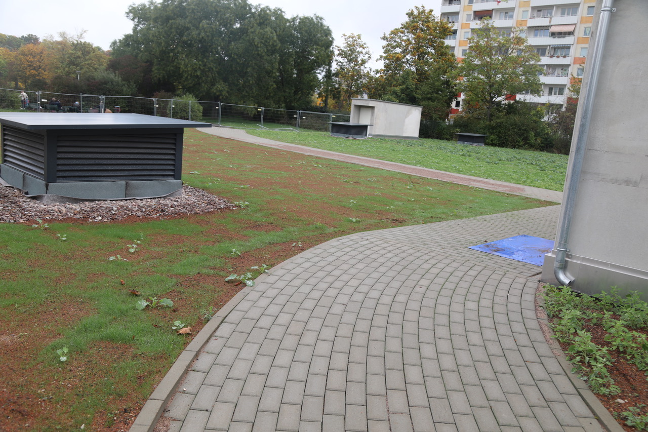 Am 20. November wird das neue Einkaufszentrum Am Roten Berg, das jetzt den Namen „Zoopark Center“ trägt, seine Pforten öffnen. Seitdem die Arbeiten nach längerem Stillstand wieder angelaufen waren, schritt der Bau in hohem Tempo voran. Parallel wird jetzt an der Fertigstellung einiger Gebäude, der Inneneinrichtung und der Befestigung der Wege und Parkplätze einschließlich aller zu installierenden Medien gearbeitet. Auch das Dach der Tiefgarage ist bereits begrünt. Sie fasst 88 Stellplätze und bietet Ladestationen für Elektroautos.