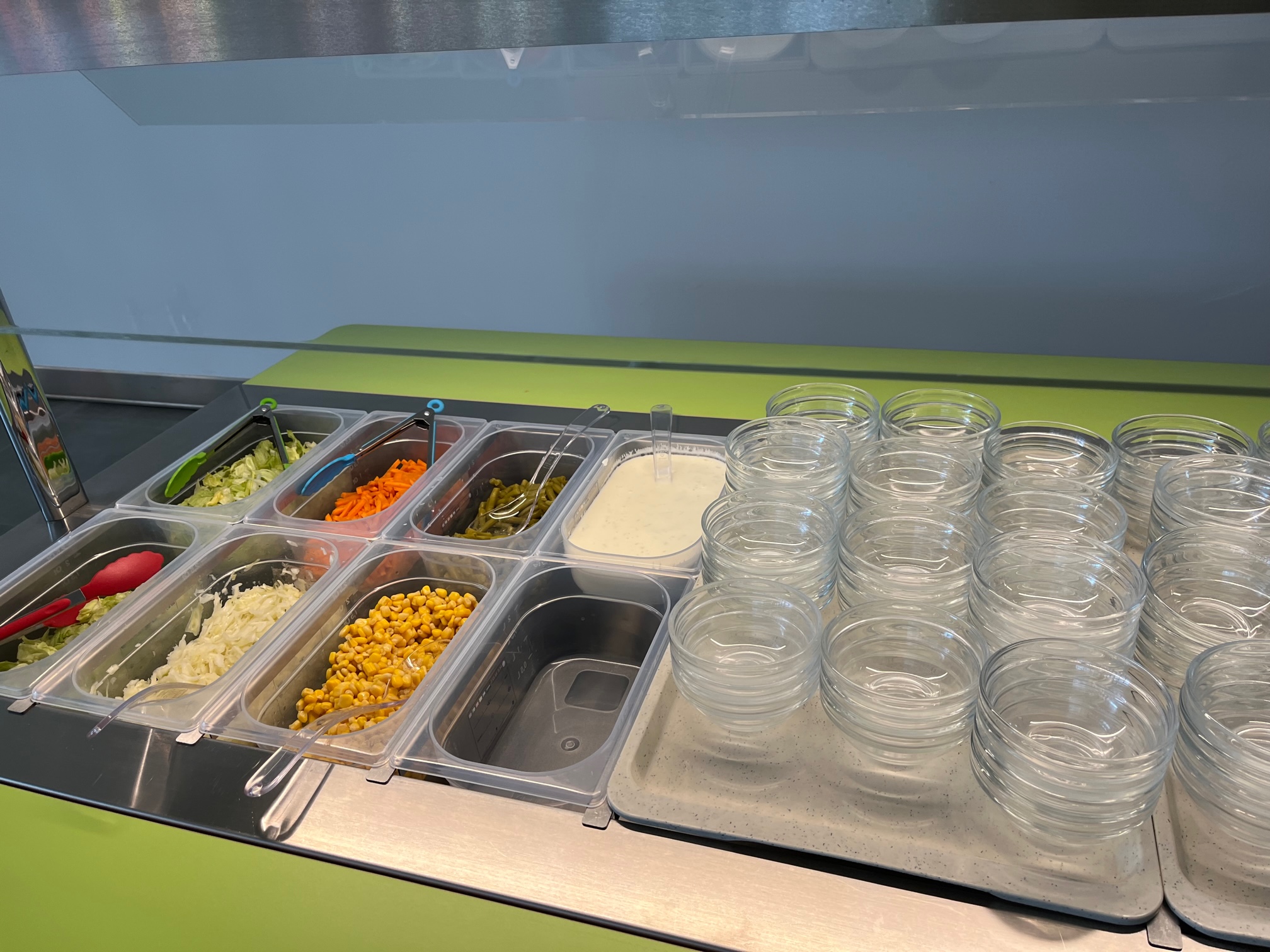 Die neue Mensa der Riethschule ist in Betrieb genommen. Hier nehmen die Schüler ihr Mittagessen ein, das auf Frische und Gesundheit fokussiert ist. Eine Salatbar wurde vom Catering-Unternehmen Schmähling den Kindern zur Verfügung gestellt.