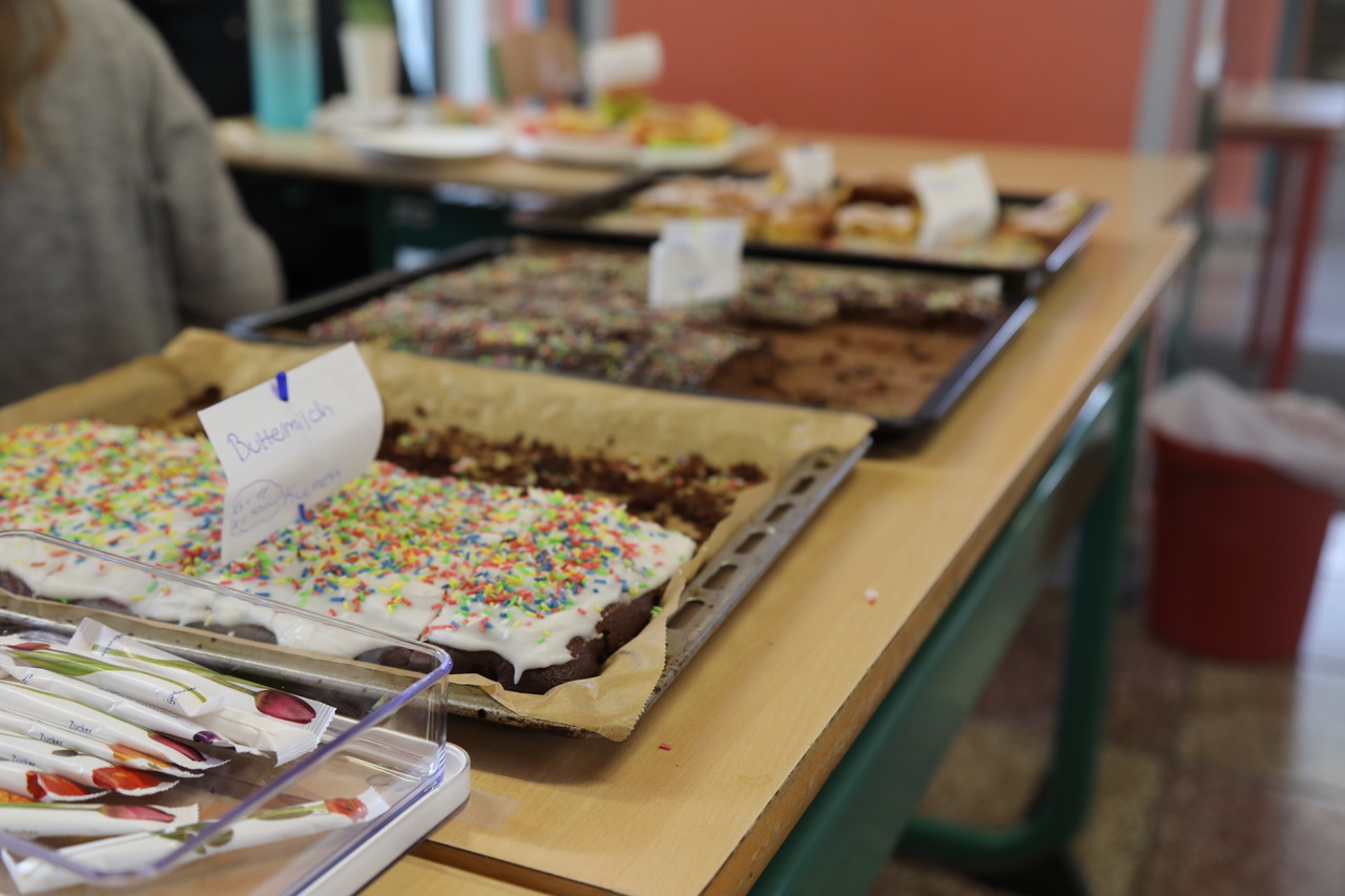 Schüler, Eltern und Lehrer haben gebacken, um die Gäste zum Tag der offenen Tür zu bewirten.