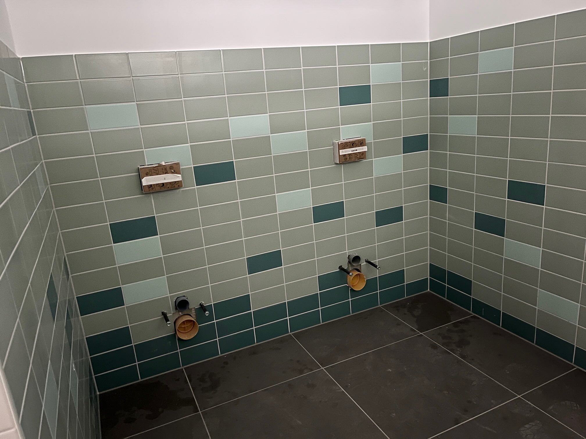 Fliesenverlegung schreitet voran.