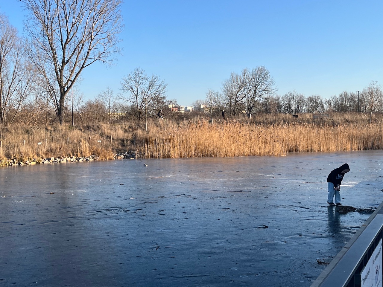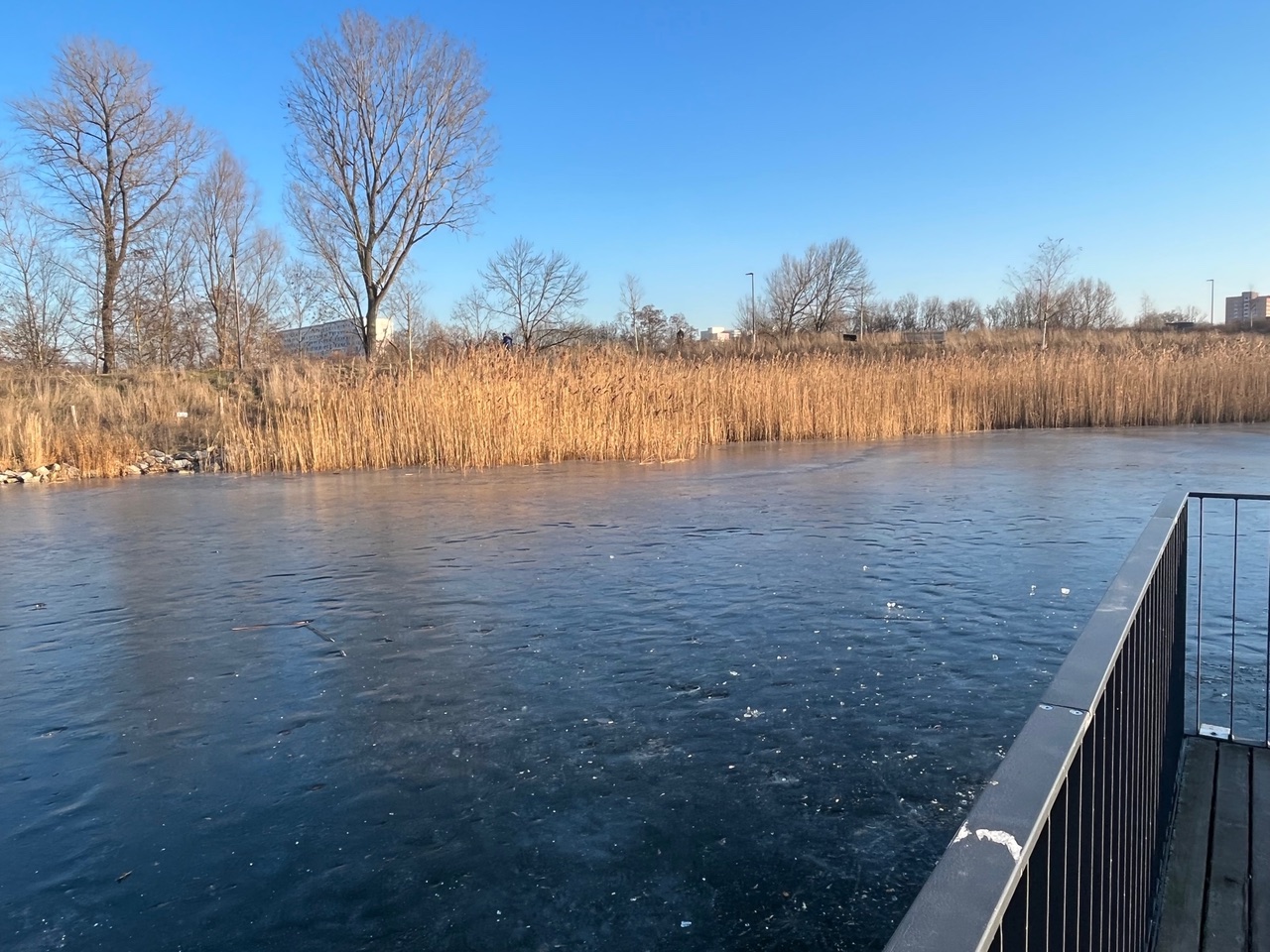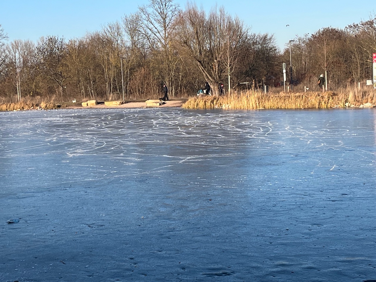Man kann sie in der Geraaue genießen wie wir vor einigen Tagen am Auenteich. Der ist dick zugefroren, mancher traut sich aufs Eis. Spaziergänger, Radfahrer, Jogger, Hundebesitzer und viele Eltern mit ihren Kindern nutzen die Gelegenheit für Bewegung an frischer Luft.