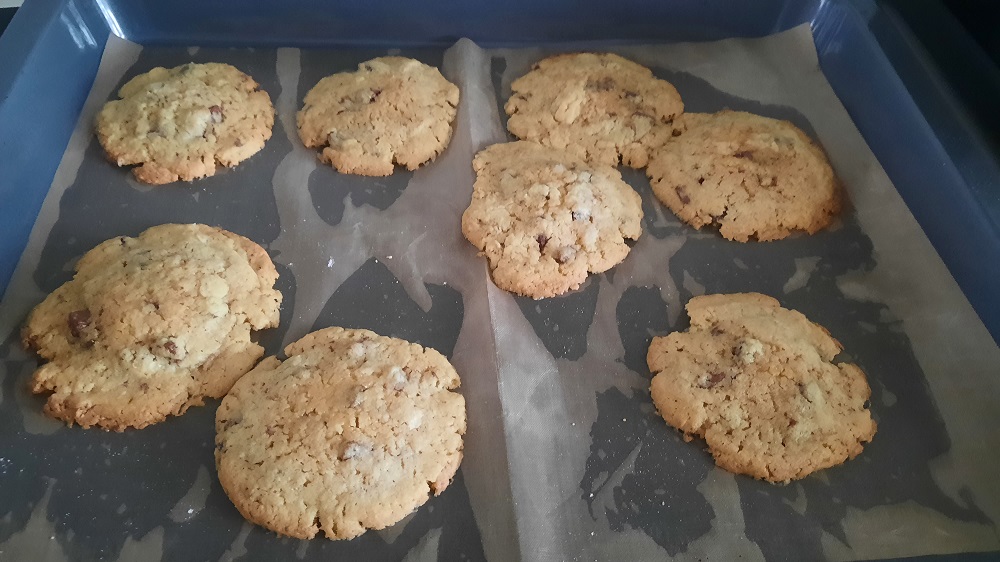 Teig: 230g Butter, 130g Zucker, 130g brauner Zucker, 1 Ei, 1 Eigelb, Vanillearoma,