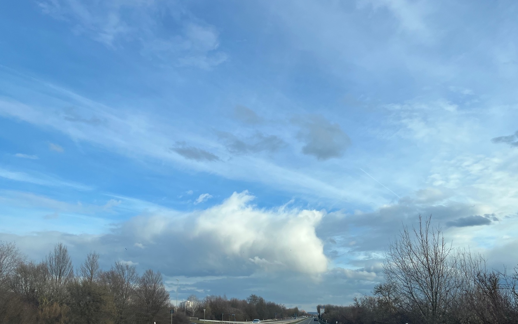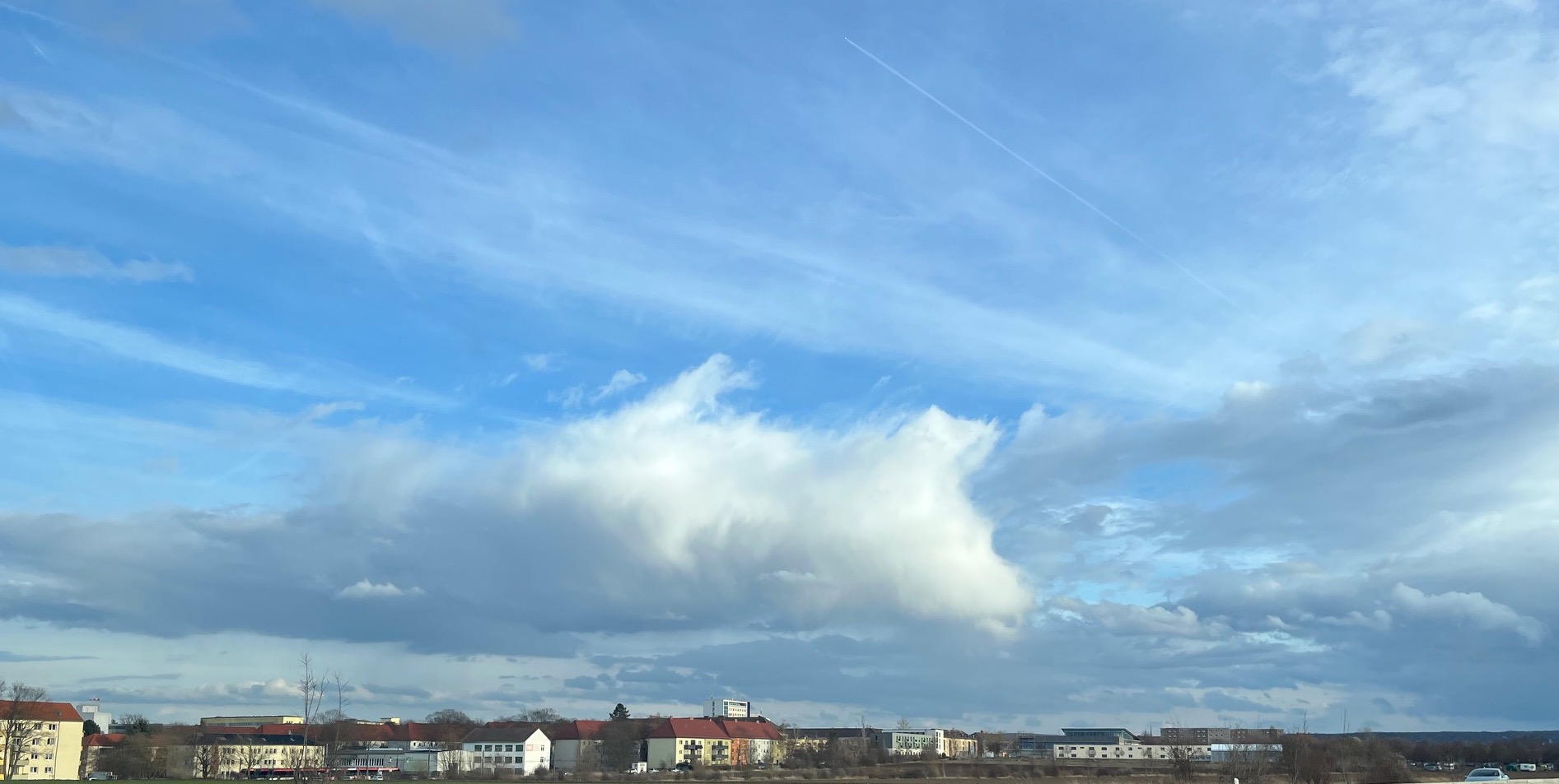 Vor einigen Tagen zeigte sich ein interessanter Himmel: Regen und Sonne sorgten für einen kräftig in den Spektralfarben leuchtenden Regenbogen. Die Wolkenformationen über unserem Erfurter Norden waren ebenfalls sehenswert. Leider ist alles schnell verändert oder ganz weg, Da bleibt nur, sofort Bilder noch aus dem Auto heraus zu machen (natürlich nur als Beifahrer).