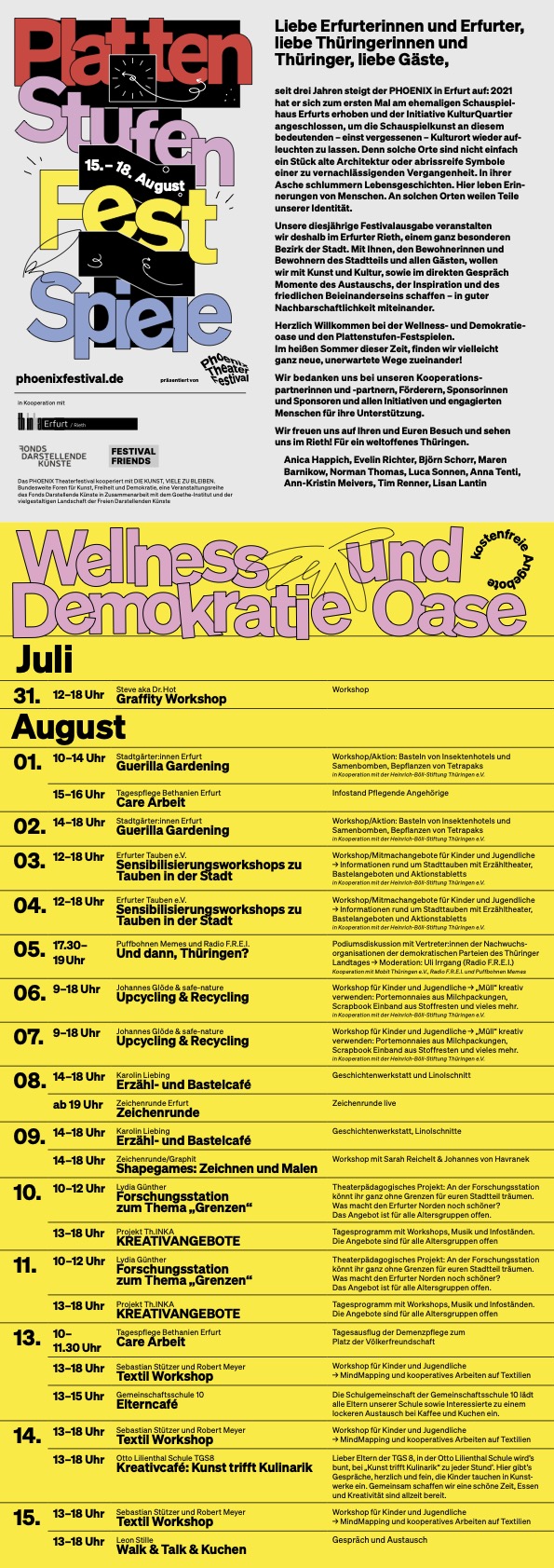 Während auf dem Domplatz zum nunmehr 25. Male die Domstufenfestspiele gleich beginnen, kündigt sich ein Kulturhighlight in unserem Stadtteil an – die Plattenstufenfestspiele. Ab morgen, 31. Juli bis zum 18. August, ist der Platz der Völkerfreundschaft dafür bereit.