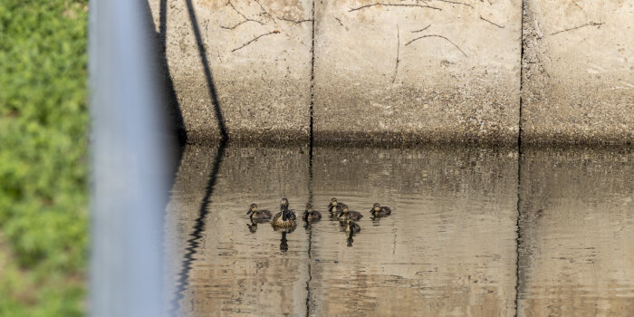 Am Montag wurden eine Entenmutter und ihre Küken gerettet, die im Regenrückhaltebecken im Ikarusweg am Roten Berg festsaßen. Aufmerksame Beobachter hatten dies gemeldet. Dem Enten-Nachwuchs war es nicht möglich, das Becken allein zu verlassen.