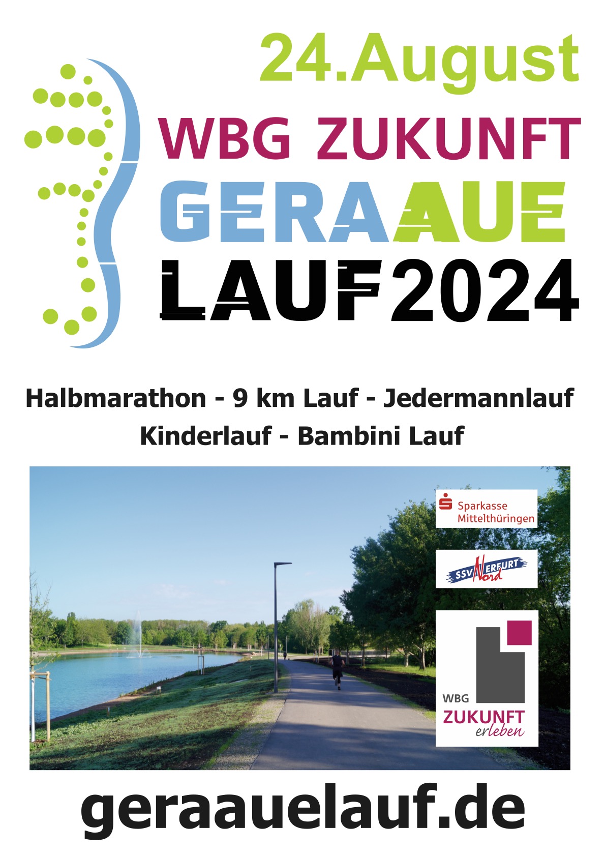 Am 24. August findet zum nunmehr vierten Male der WBG Zukunft Geraauelauf statt. Für alle Altersgruppen und jegliche sportliche Fitness ist eine passende Strecke dabei – ob 1,3 Kilometer für Schüler, 4,3 Kilometer für „jedermann“, neun Kilometer für erfahrende, gut trainierte Läufer oder die Halbmarathonstrecke für ganz Ambitionierte.